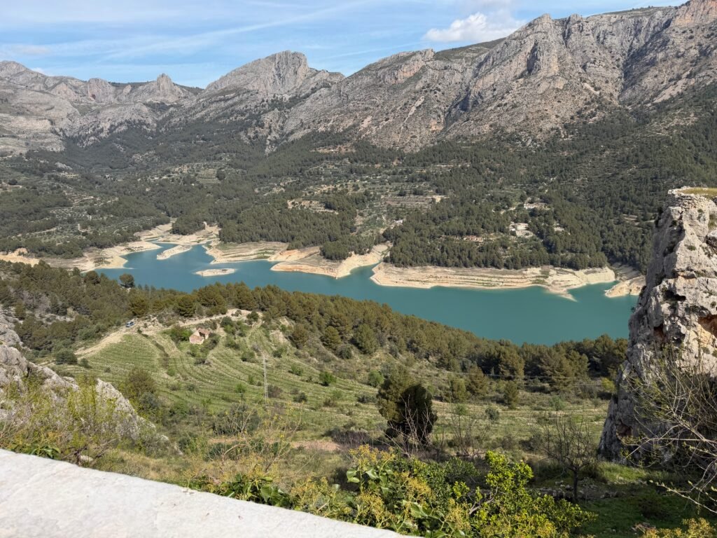 La route de montagne entre Polop et Guadalest est elle-même un régal — des virages, des panoramas, des amandiers en fleurs en cette saison… On prend son temps et on en profite !